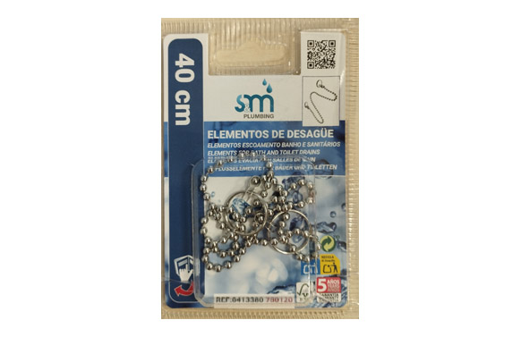 Cadena lavabo/bide/fregadero 40 cm cromado